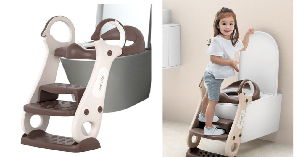 De antisliplaag op zowel de treden als de onderkant van de zitting bieden extra grip en stabiliteit terwijl ze hem gebruiken. En omdat veiligheid belangrijk is, is de toilettrainer gemaakt van 100% BPA-vrij plastic, zodat je je geen zorgen hoeft te maken over nare chemicaliën die in contact komen met de billen van je kleintje.